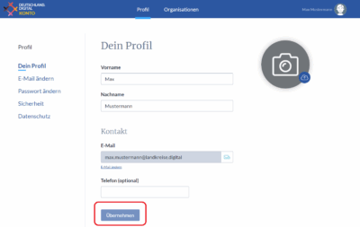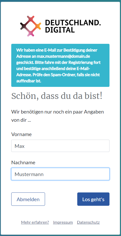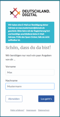 Die Organisation wird nach der Zugangsanfrage durch das Team von DEUTSCHLAND.DIGITAL für Sie erstellt.