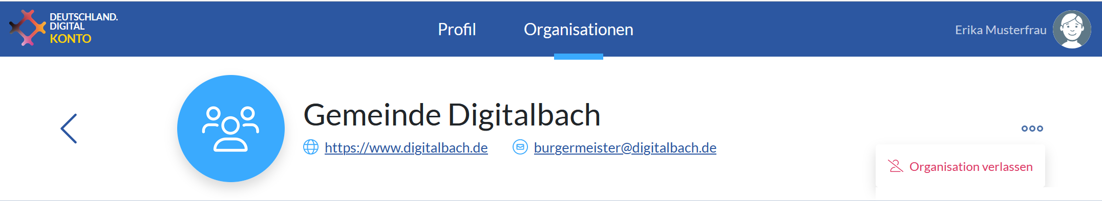 Um eine Organisation verlassen zu können, müssen Sie sich in ihrem DEUTSCHLAND.DIGITAL Konto anmelden.